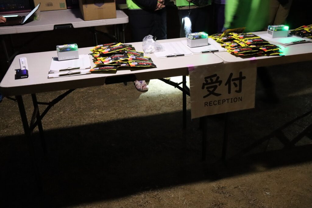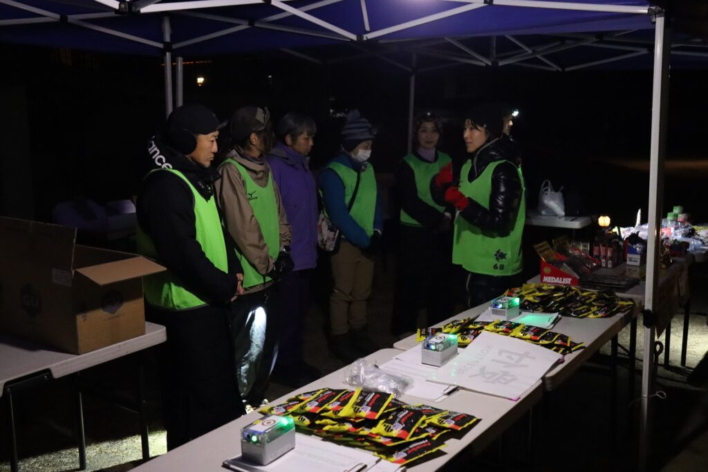 さて、受付時にタッチする計測器も正常を確認できたので、ゴール地点に向かって準備をします。まだまだ暗いけど、寒さも控えめで運営としてやりやすい日になりそうです。