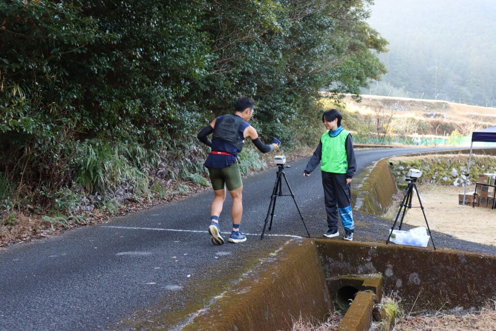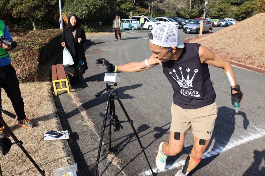 この大会は3カ所の関門があり、選手が身に着けたリストバンド式のタグを各関門に設置した計測器にタッチしていただき通過状況を管理する方式です。