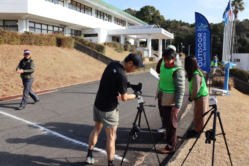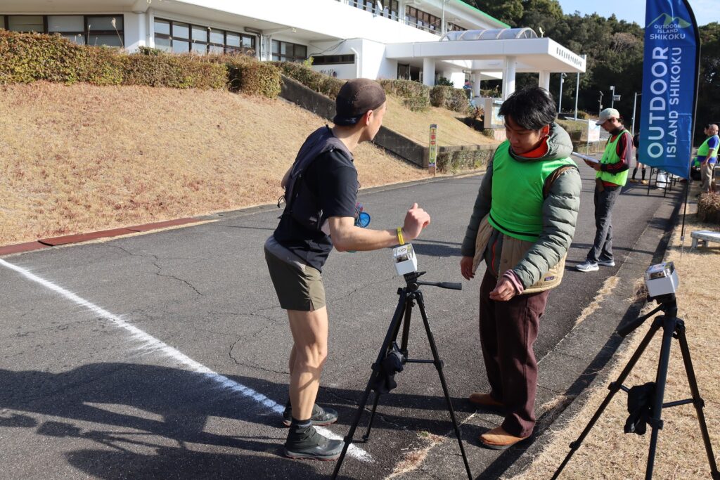 1月17日の午後から前日準備をはじめました。選手通過管理を行う関門が3か所あるので下見をしました。必要な機器をスタッフの方に渡して簡単に説明を実施。そのゴール地点の確認と機器搬入。