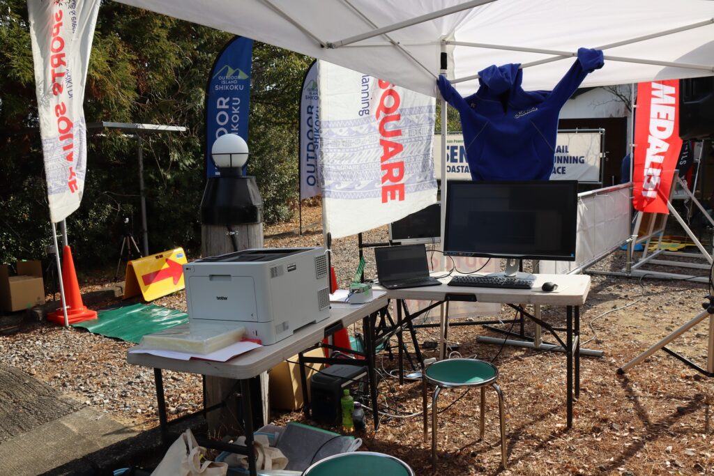 ゴールの計測作業の様子です。表彰状の印刷をするため、大きなレーザープリンターを持ち込んでいます。雨なら大変でした。。。天気が良くてよかったです。