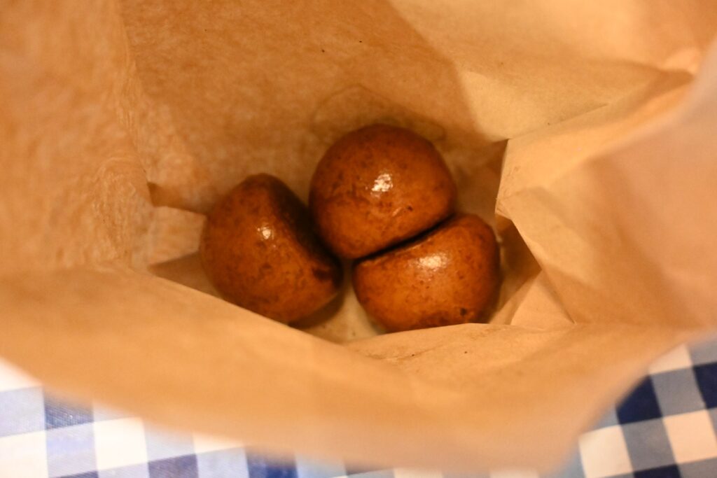 これ、おいしいです。完全手作り。あんこも皮も。蒸かして、オーブンで焼いて、油で揚げるという手間がかかってる。カリっとした食感と、優しい甘さのあんこ。もうさいこーです。