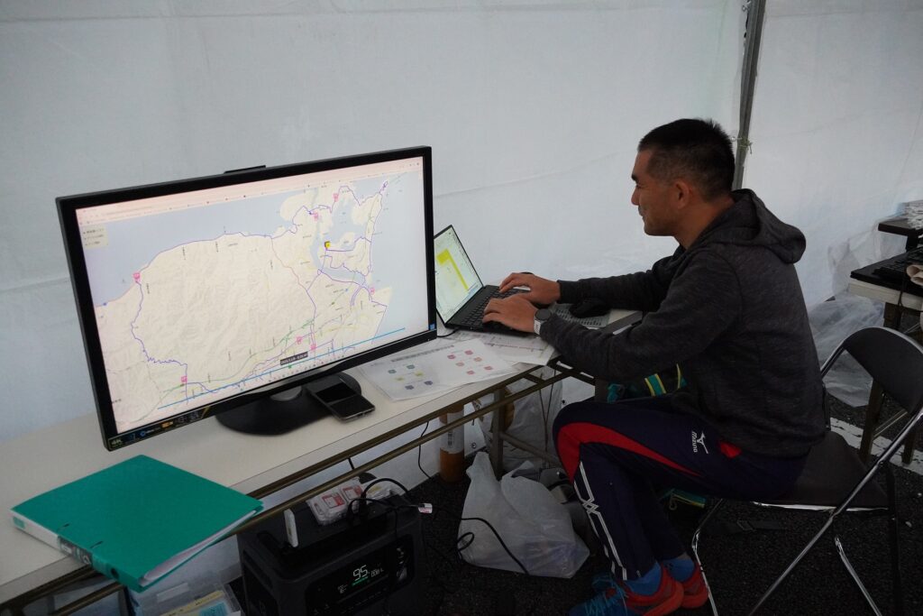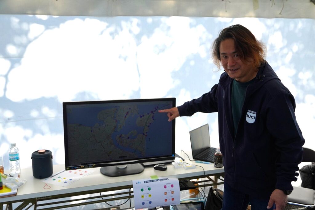 もう1件特徴的なことがありました。位置情報の画面の更新は1分毎に行われるので、常に画面に動きがあります。その中で、5分とか10分とか動ない場合、何か異常を疑うようになります。今回、コースを少し離れた場所に数十分滞在している方を見つけました。けがをしていないか、自転車が故障したのではないか、、、大会本部からご本へ連絡しました。