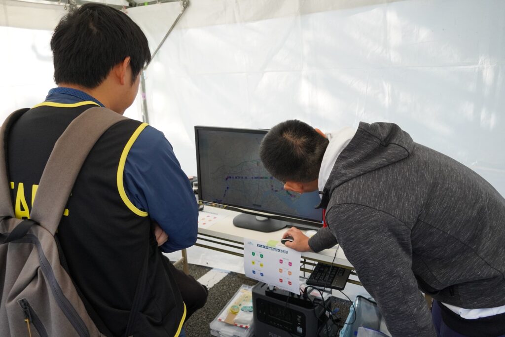 みなみえるとしても準備万端です。今回は大きなディスプレイを持ち込んで、スタッフの皆さんに位置情報を見ていただけるようにしました。