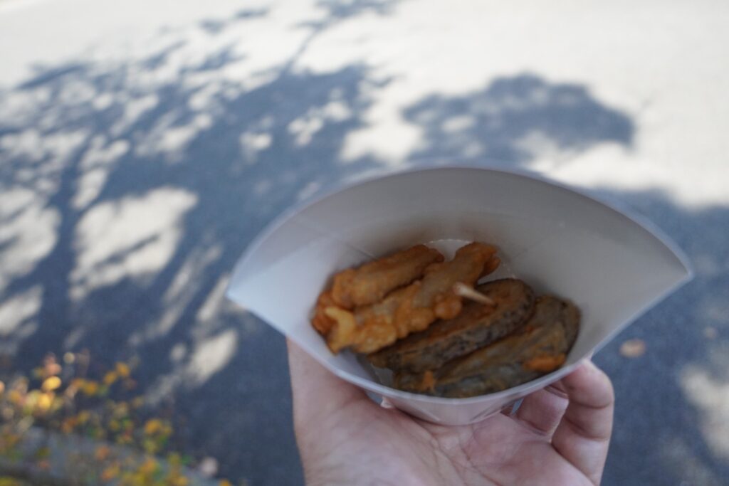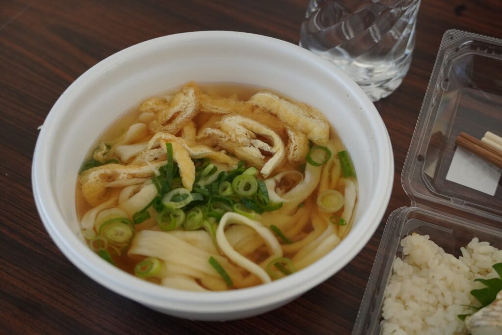 エイドステーションでは、たくさんの食べ物が提供されていました。みなみえるメンバーは大会本部にいる必要があったため、エイドステーションには行けませんでしたが、お昼にいくつか食すことができました。鳴ちゅるうどん、鳴門の鯛めし、レンコンのから揚げをいただきました。どれも大変美味でした。ご馳走さまでした!