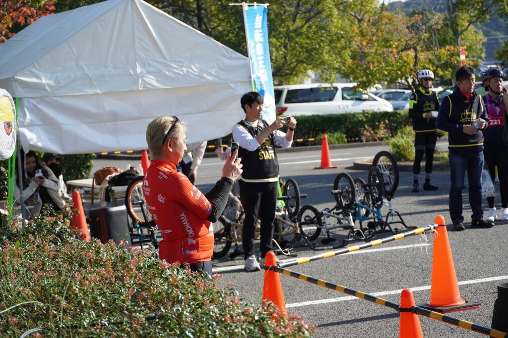 大会の重要な運営メンバーでもあり、徳島県自転車競技連盟理事長の中西さんです。弊社GPS位置情報提供サービスをとても評価いただいており、「一度使ったら、これなしでは考えられない」とおっしゃってくださいました。